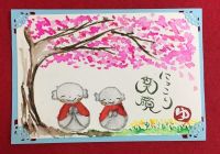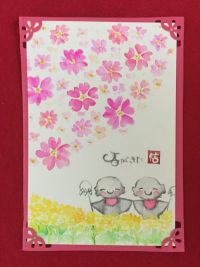 桜とお地蔵さんを組み合わせたカードを描きました!